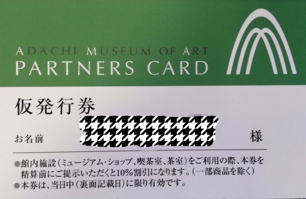 足立美術館のパートナーズカードは入館料だけでなく様々な特典がつくお得なカードです
