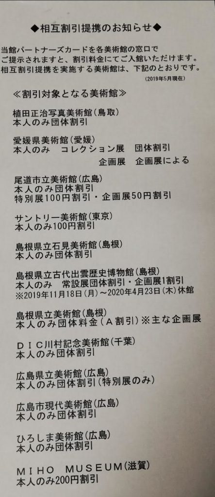 • パートナーズカードの提示で、提携美術館に割引料金で入館可能