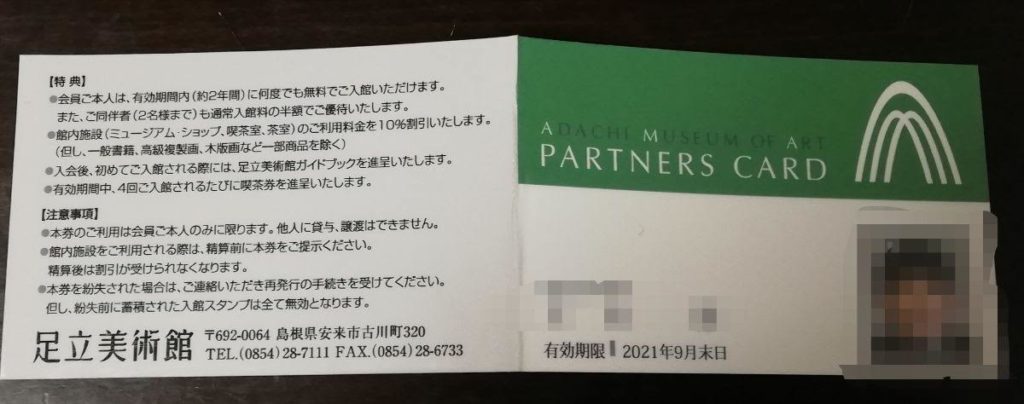 以上、足立美術館の年間パスポート、「パートナーズカード」のご紹介でした。
