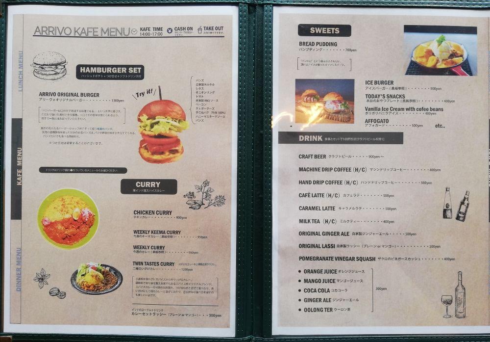 カフェタイムにはスイーツだけでなく、ハンバーガーやカレーを注文することができます。