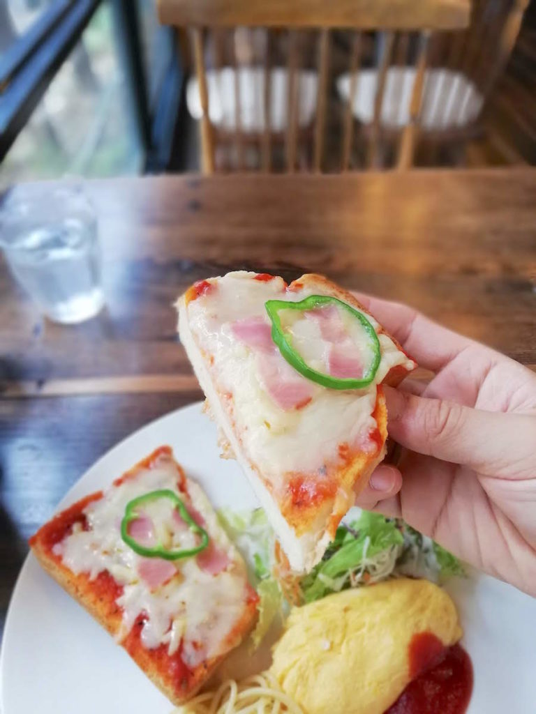 そして、コーヒーとともにやってきたピザトーストモーニング。