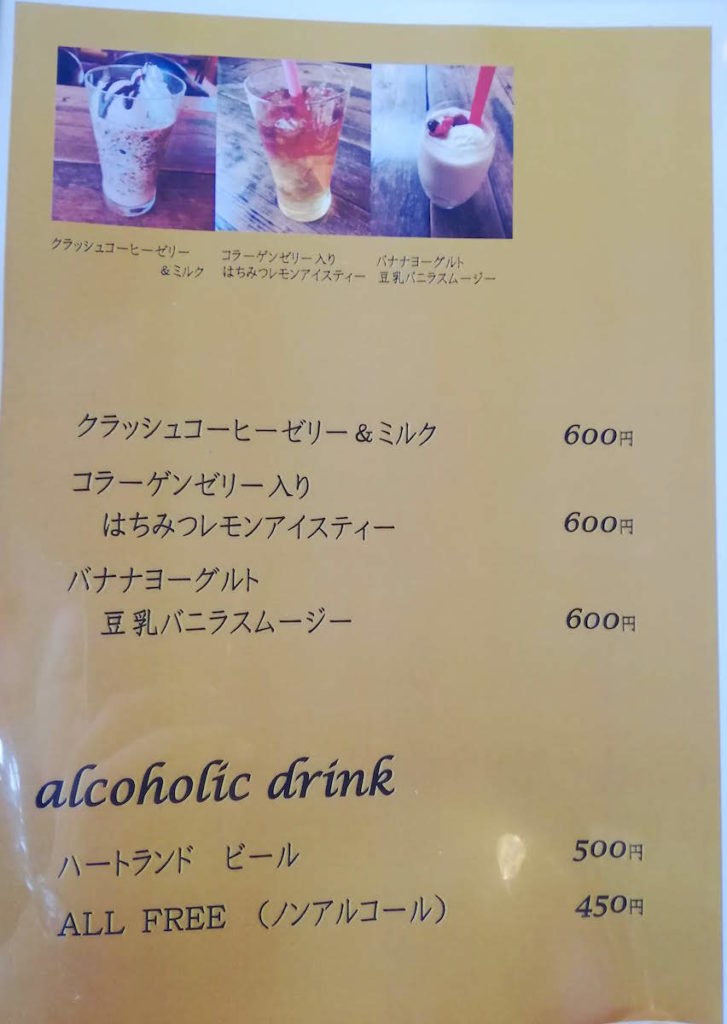 ドリンクメニューとデザート