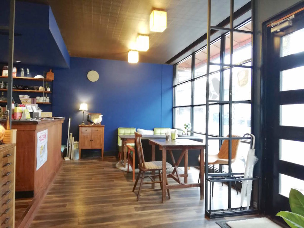 テーブル席と、少し高めのスツールの席と選べる店内。