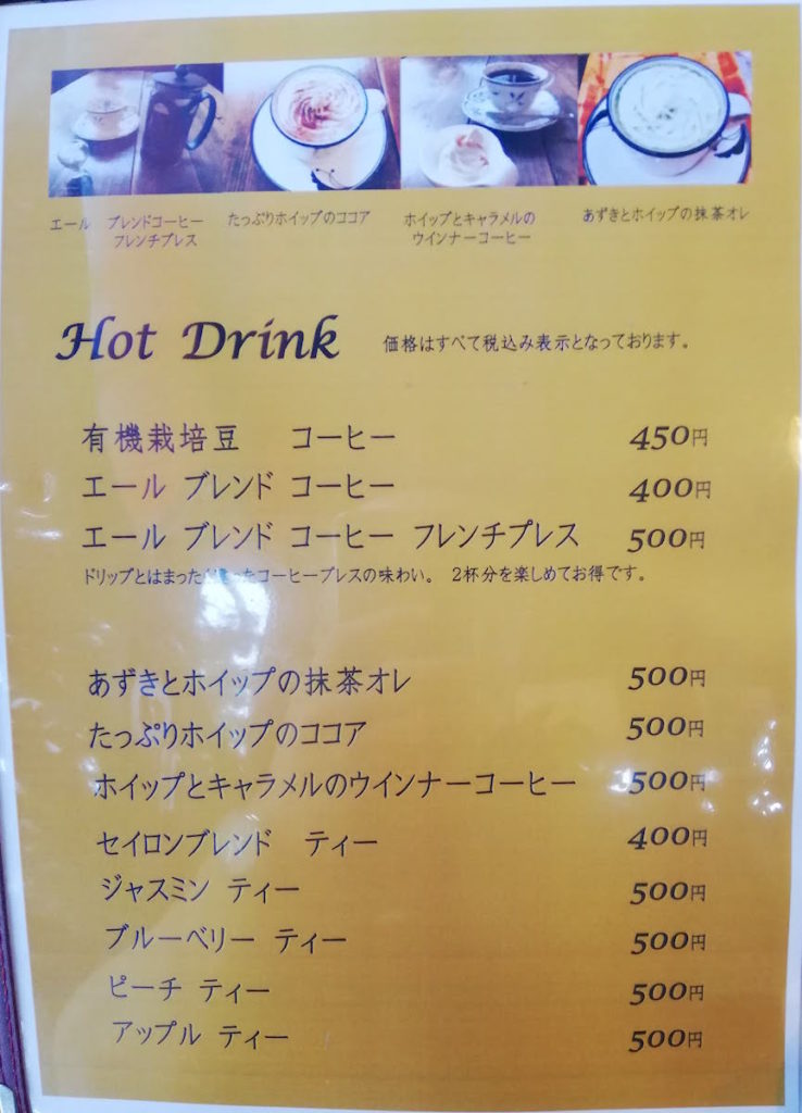 カフェエールのメニュー一覧