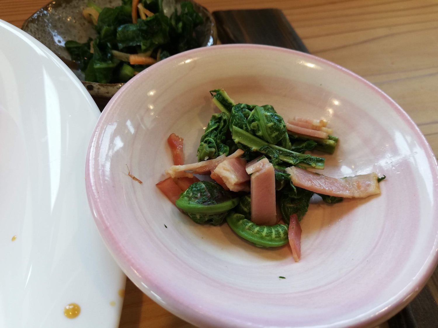 ベーコンと合わせてあるのがかなり意外な組み合わせでしたが、薄い味付けでベーコンの脂がしっかり絡んでいました。