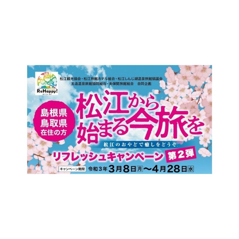 2020年6月に開催された松江リフレッシュキャンペーンが帰ってきます。 松江市内の宿泊が最大5000円まで半額割引になるという太っ腹企画の第2弾がスタート! しかも、前回は松江市民限定だったのが、今回は島根・鳥取県民に対象が拡大しており、大学生には... -