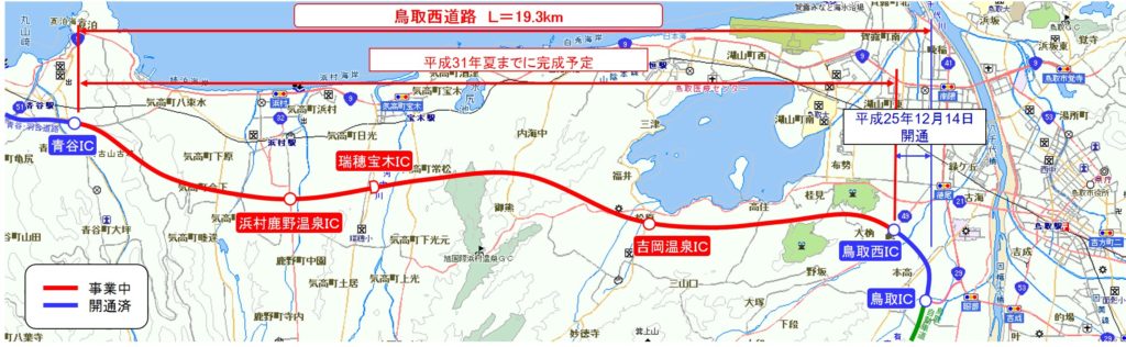 5月12日に鳥取西道路、鳥取西IC~青谷IC間(延長17.5km)がつながり、鳥取〜米子間が全線開通となりました。 これにより、鳥取市と米子市間の移動所要時間が15分ほど短縮され、約95分ほどに。 「令和の幕開けとともに完成し、いよいよハイウエー新時代の... -