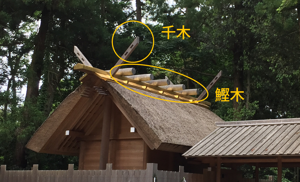 千木とは、本殿屋根の両端で交叉させた部材のことで、