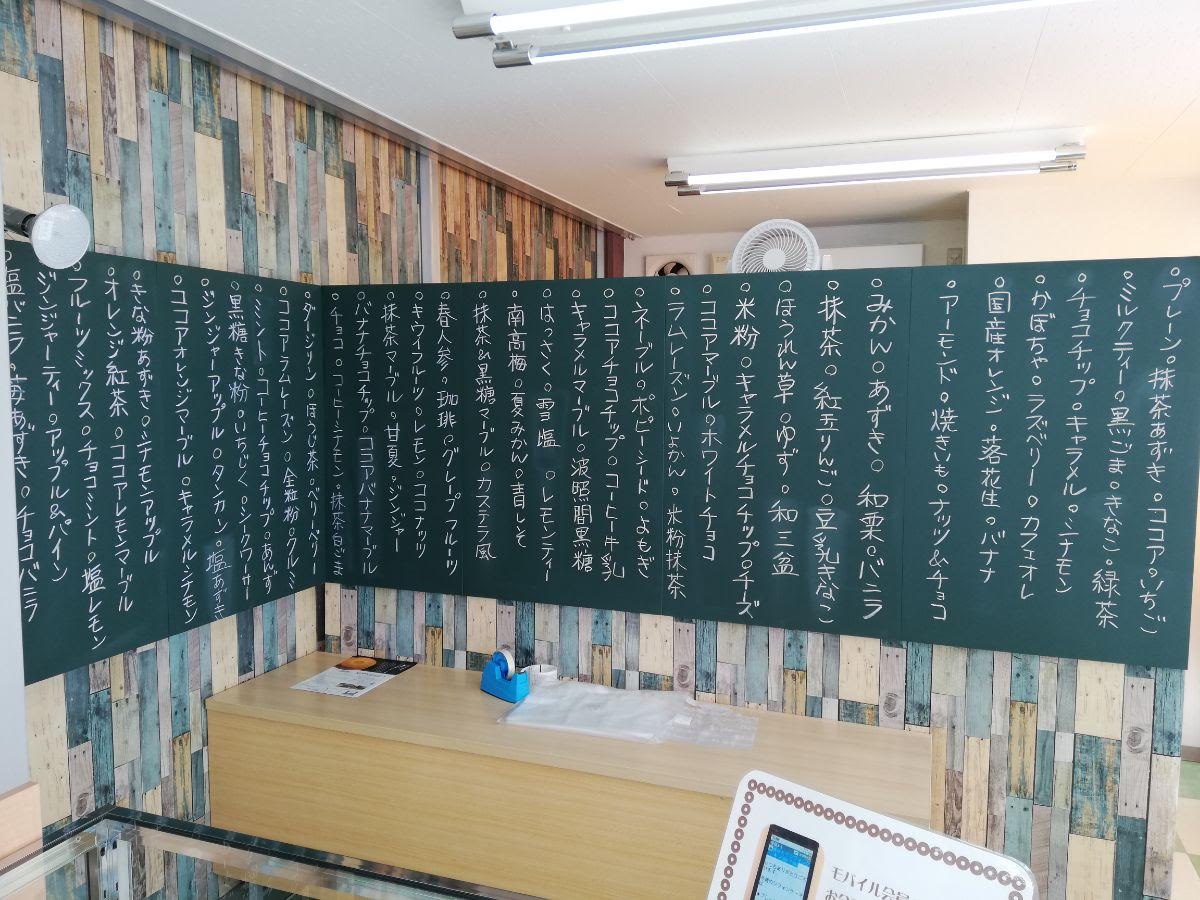 店内の黒板に書かれているのは、圧倒的なシフォンケーキのレパートリー。