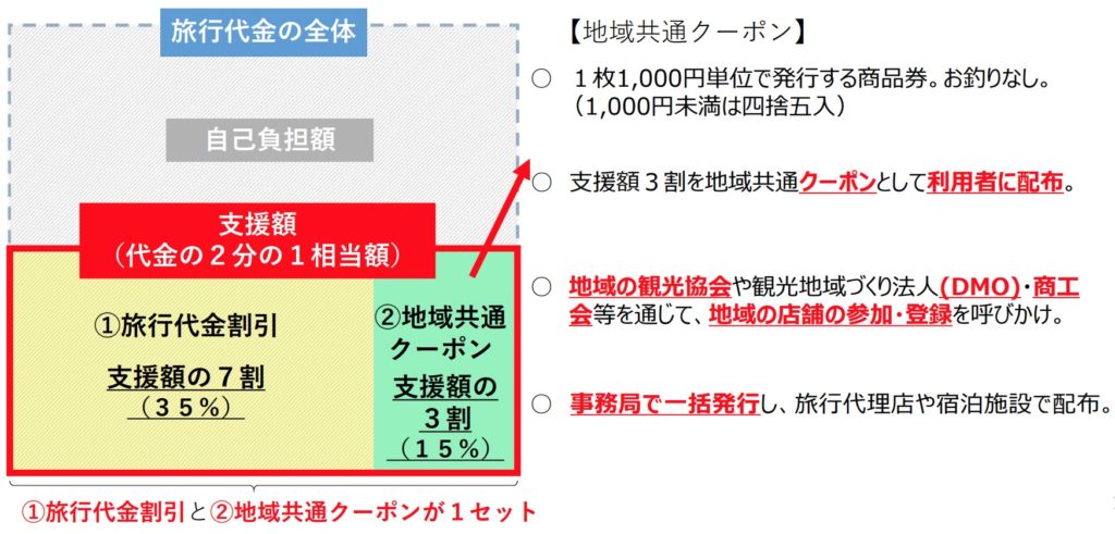 そのうち、7割が旅行代金、3割は地域で使える共通クーポンが配布されます。
