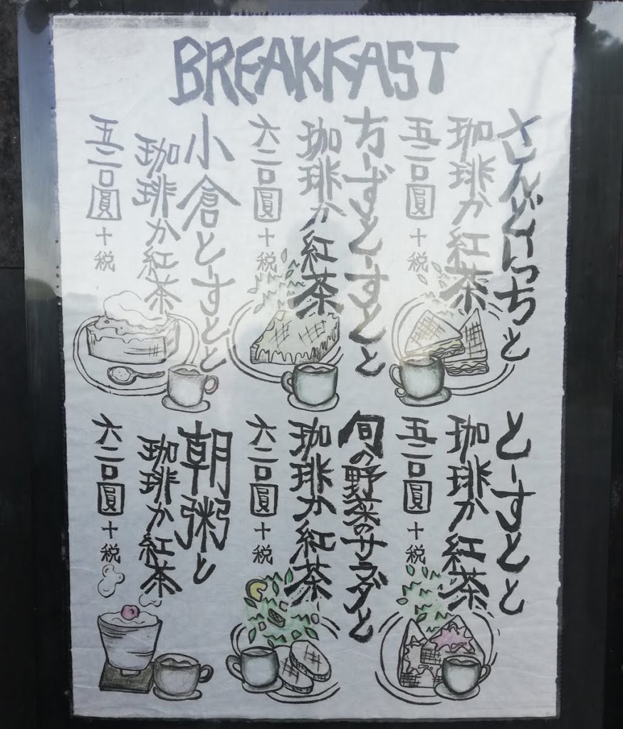 メニューはサンドイッチとトースト3種、サラダと、朝粥の6種類から選びましょう。