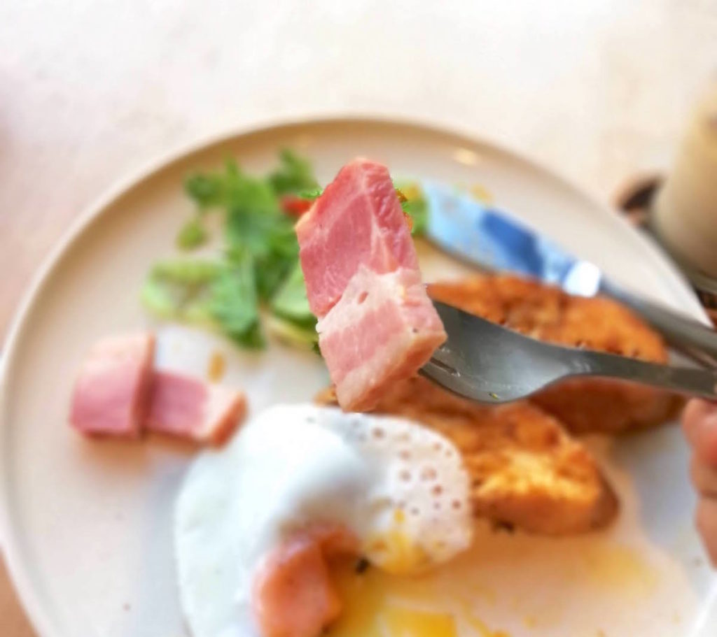 5種類のフレンチトーストの中から、選んだのはベーコンエッグ・3ピース(1130円)