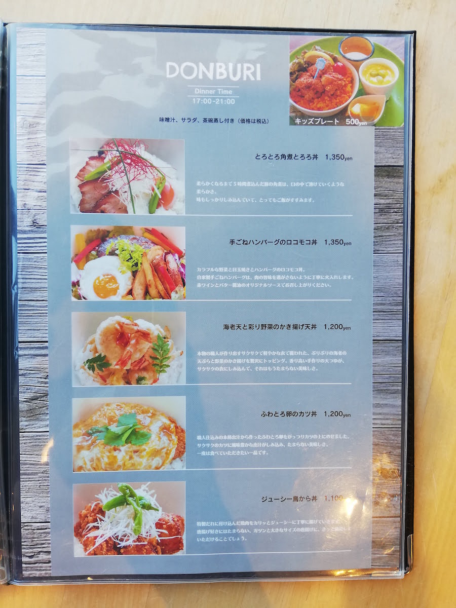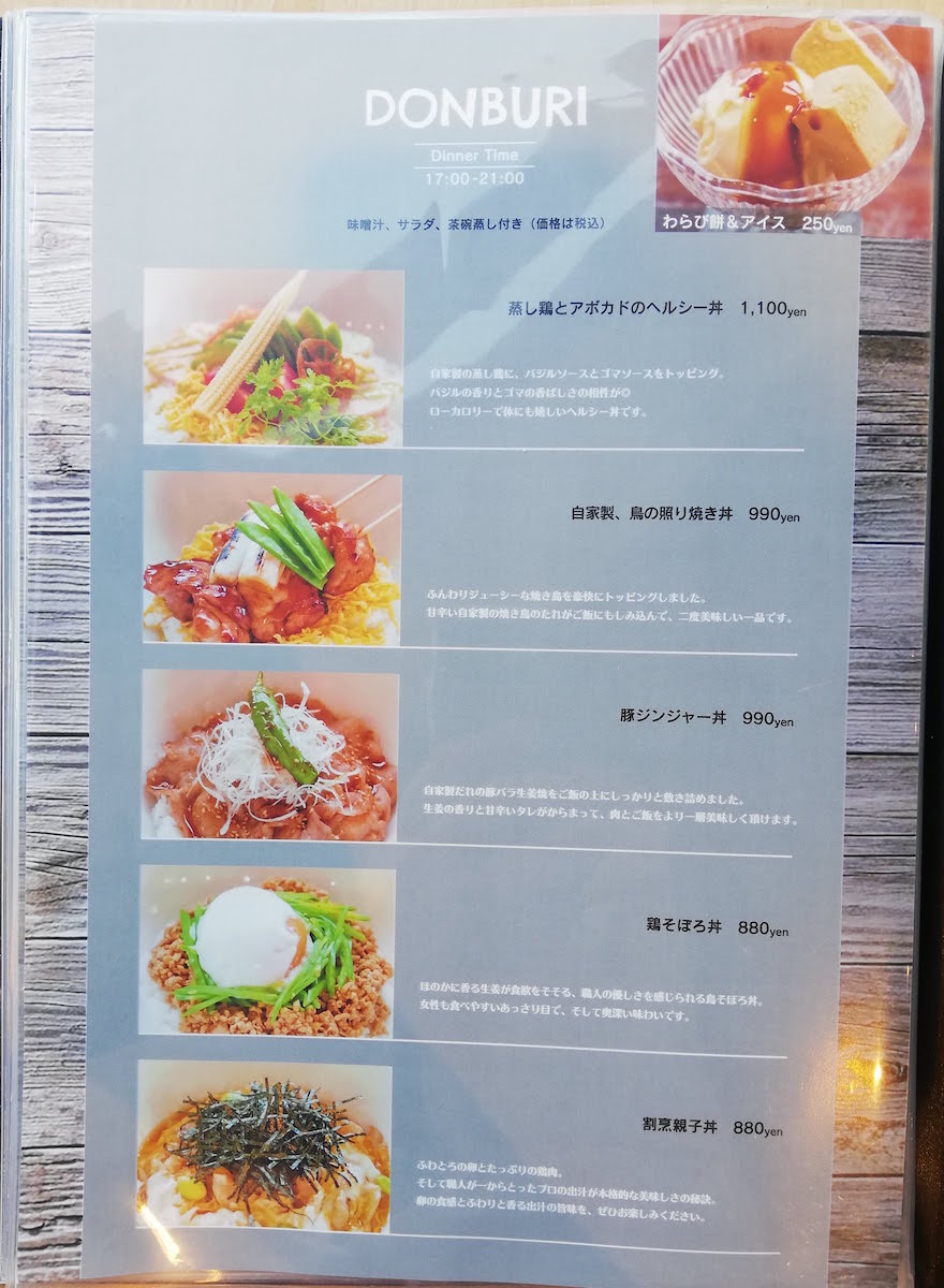 17:00~21:00のディナータイムはなんと15種類の丼です!