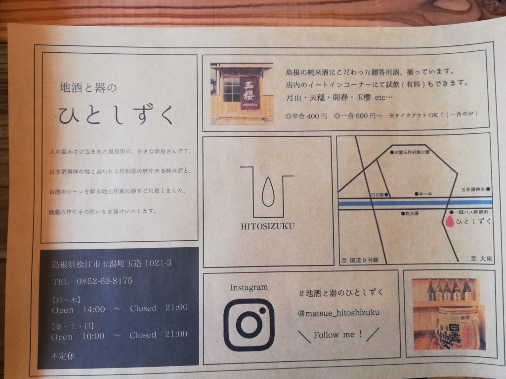 玉造温泉で地酒を購入するのであれば、ぜひひとしずくにお立ち寄りくださいね!