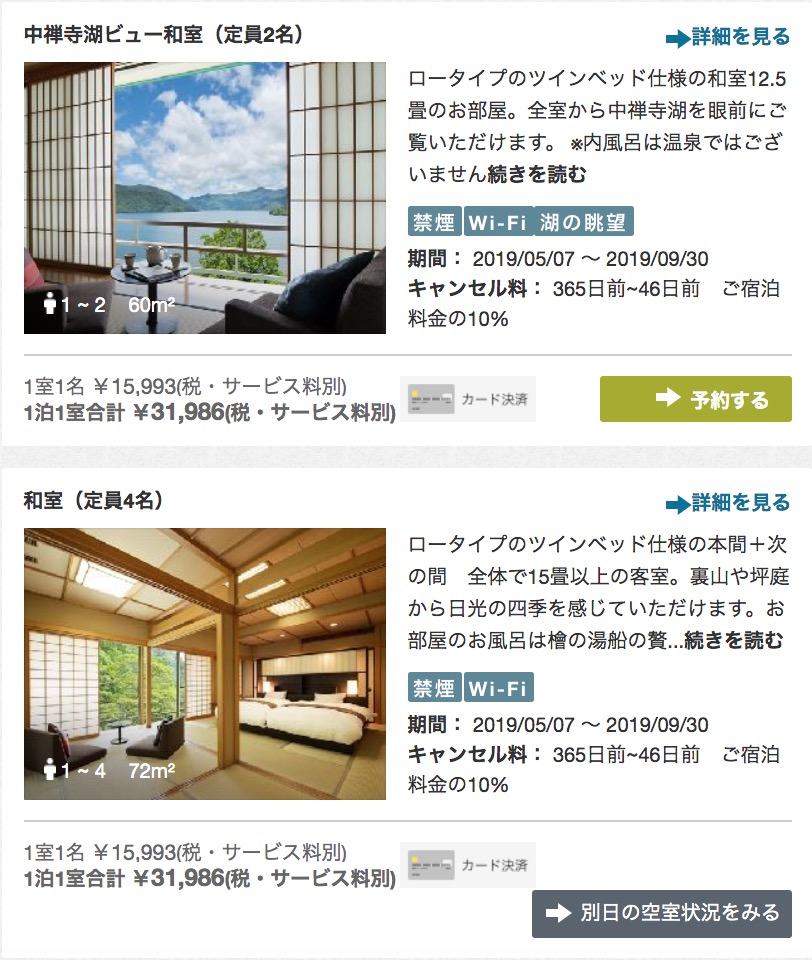 こちらから界日光のサイトに飛んでみますと、6/12で空きがありました。
