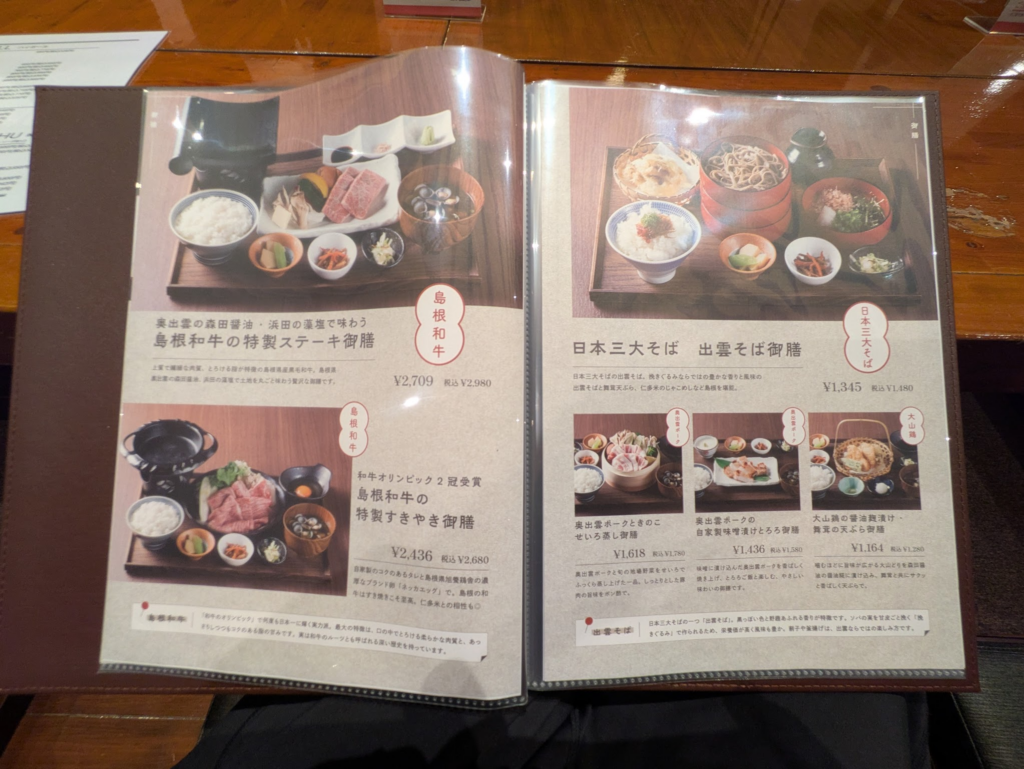 ステーキ御膳やすきやき御前、ポークを使ったせいろや鶏の醤油麹づけなど、工夫をこらした肉料理が並びます。