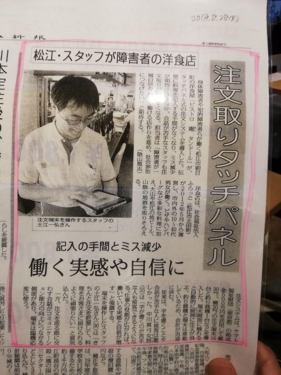 もう一枚の新聞のコピーを見ていると、タンドールは社会福祉法人ふらっとが運営しており、障害者の方々が働いているとのこと。