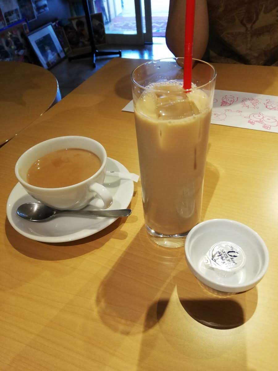食後に頼んでおいたヘーゼルナッツのカフェオレとロイヤルミルクティーをいただきます。