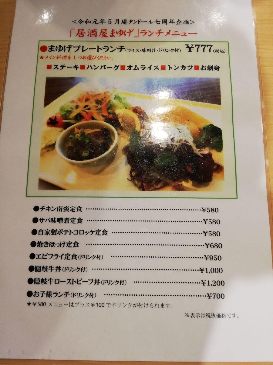 居酒屋まゆげは5月限定の営業ですが、6月からのランチメニューも見せていただきました。
