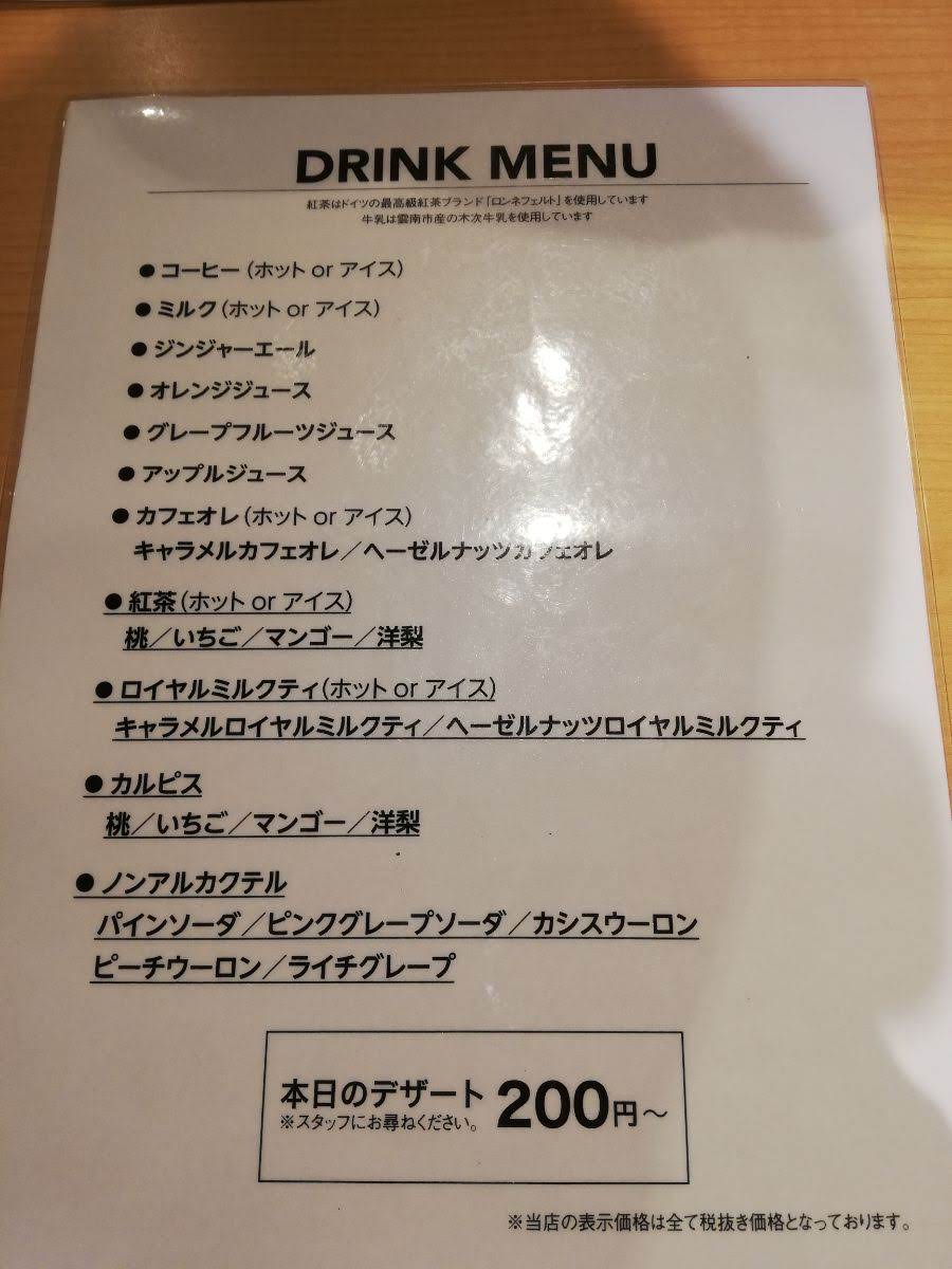 ちなみに、ドリンクはこちらのメニューから選べる模様。