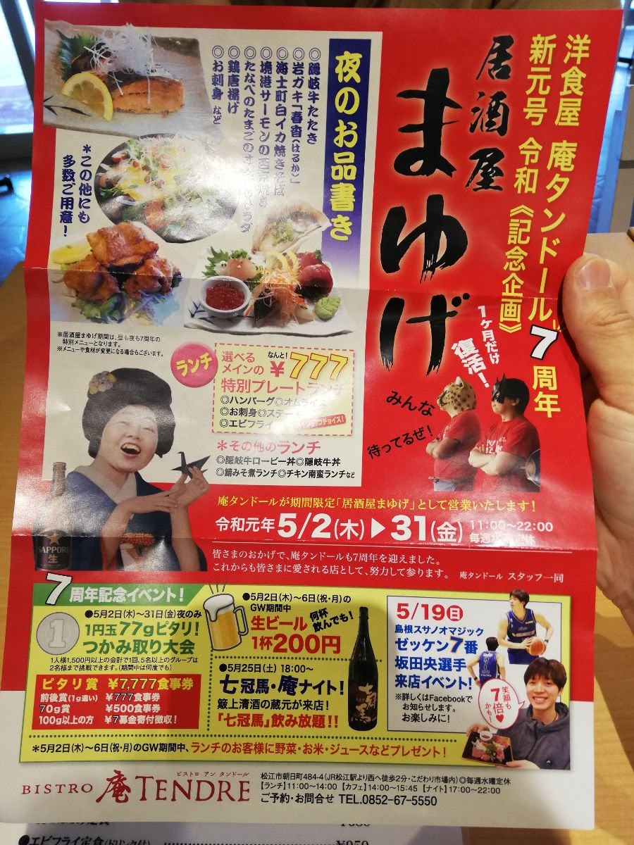 新元号令和の特別記念企画として、5月の1ヶ月間、期間限定で居酒屋まゆげが営業している様子。