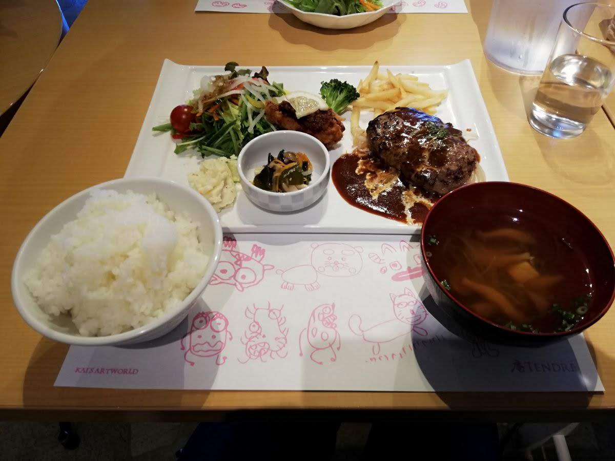 メインをハンバーグにしたまゆげプレートランチが到着。