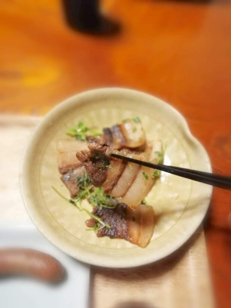 もう一皿は猪のバラ肉
