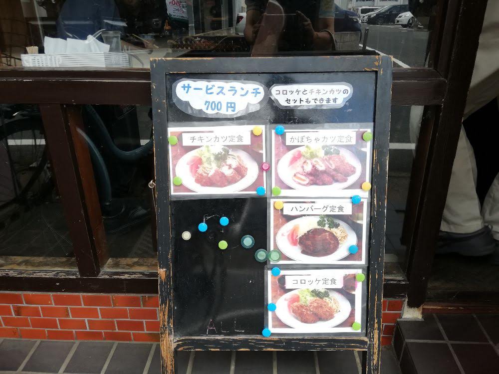 サービスランチの中でも、チキンカツとコロッケは半分づつにできるらしい。