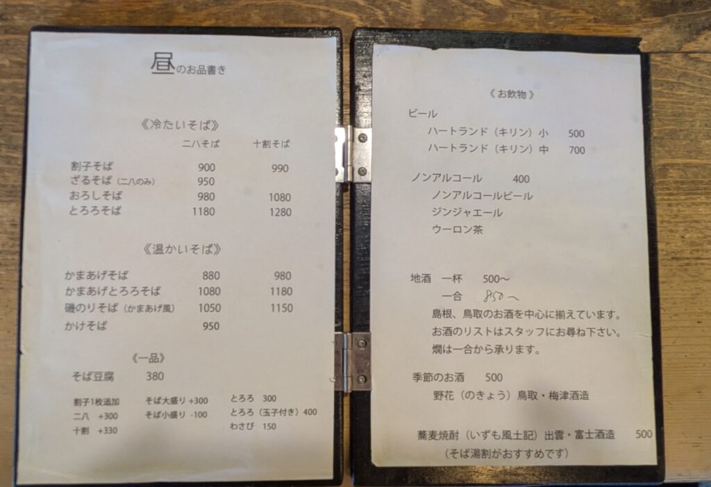 【都内の今】と【松江の昭和】に共通点を感じながら、メニューを眺めます。