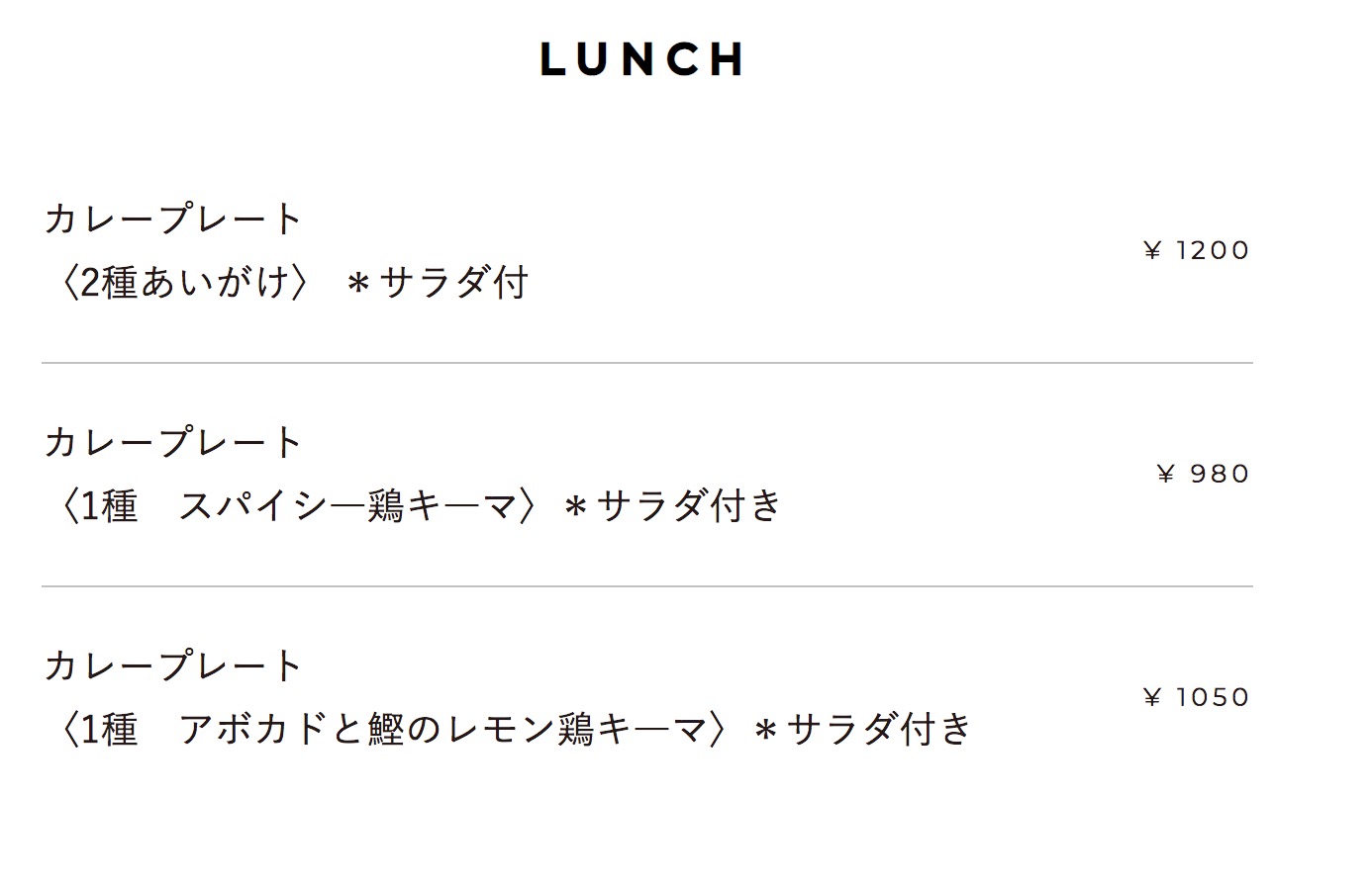 ランチメユーはカレープレートがメイン。
