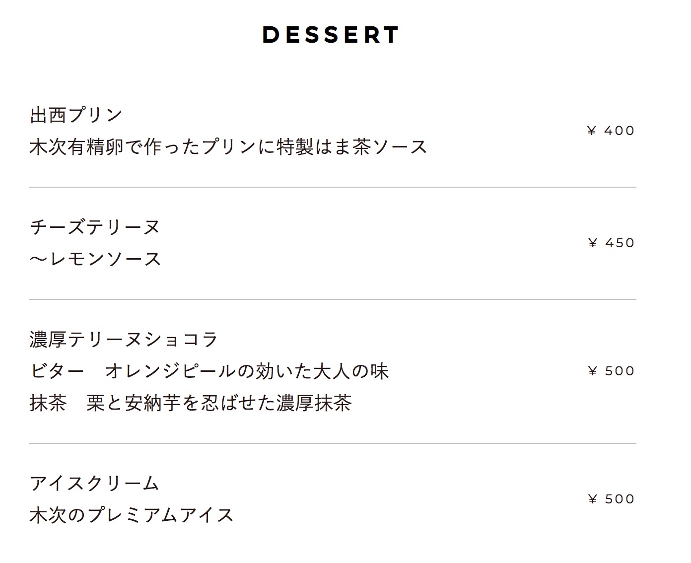 デザートはプリンやテリーヌショコラ、アイスクリームと選べます。