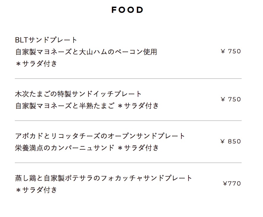 パン屋さんならではの、サンドイッチプレートが4種類用意されています。