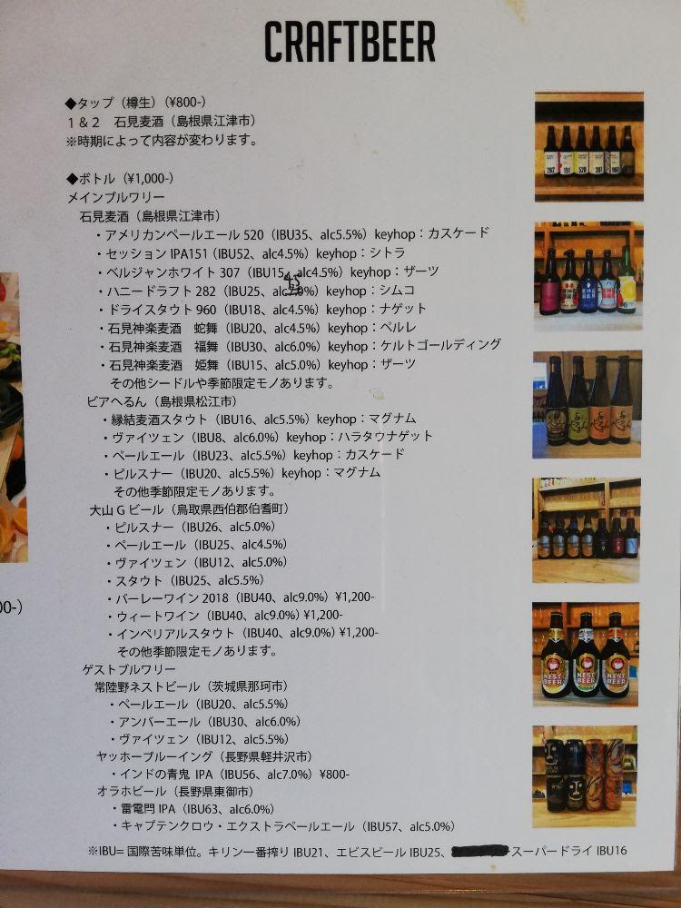 ビールは島根の地ビールを中心として、常時20種類以上揃っています。