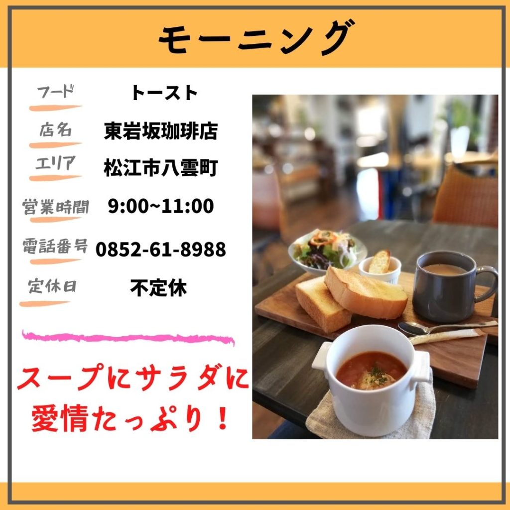 そんな思いになった方が、お店選びに苦労しないよう、松江市内でモーニングサービスを行っている店舗をご紹介します。