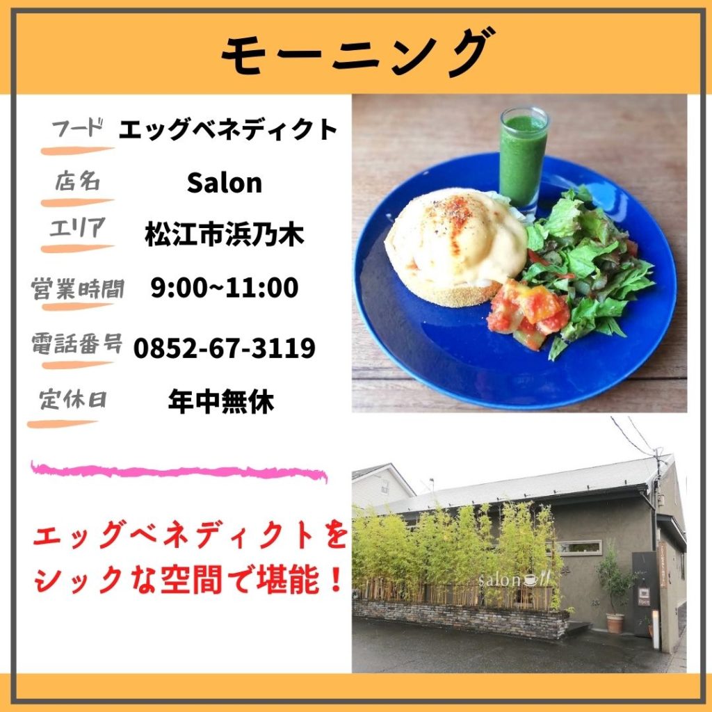 salonのエッグベネディクトモーニング|浜乃木