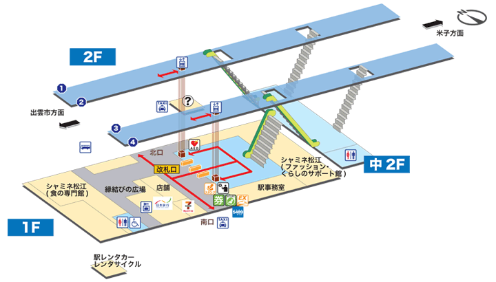 こちらは松江駅の構内図です。(引用:JRおでかけネット)