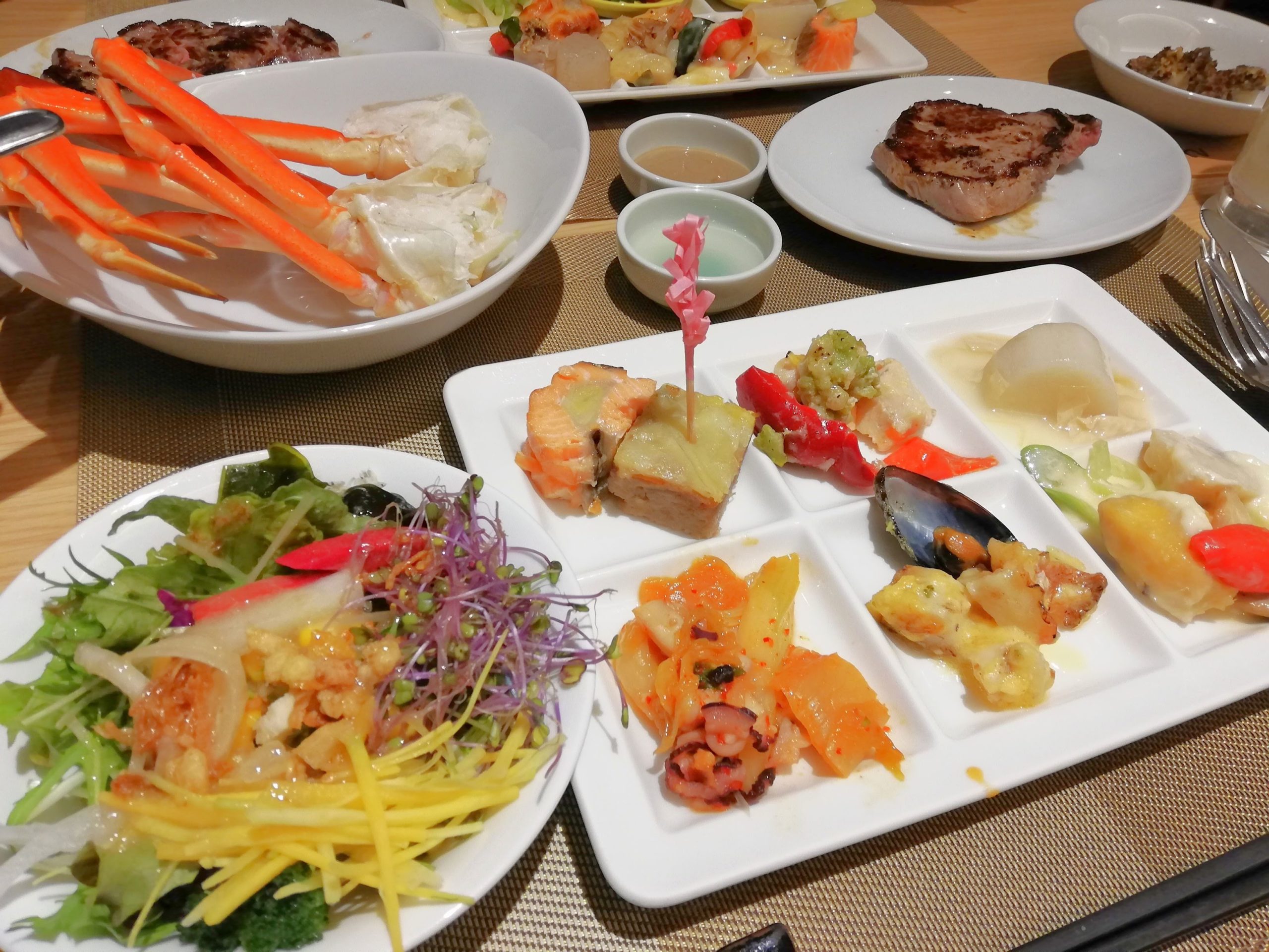 「ズワイ蟹」が食べ放題!!ライブキッチンでは肉厚ジューシーなサーロインステーキ、