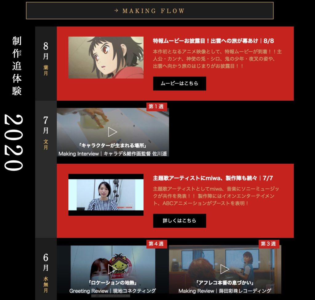 神在月のこどものプロモーションの特徴として、公式サイトで映画が作られる過程を追体験できるところです。