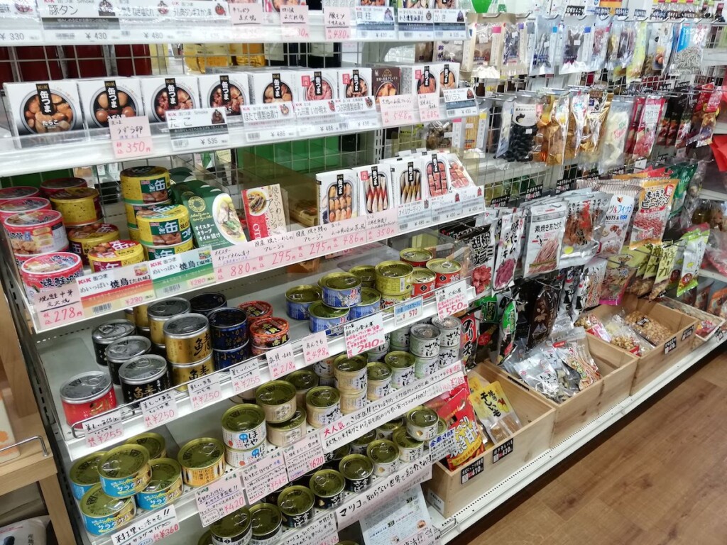 全国から取り寄せた、クジラやサバやサンマの缶詰。