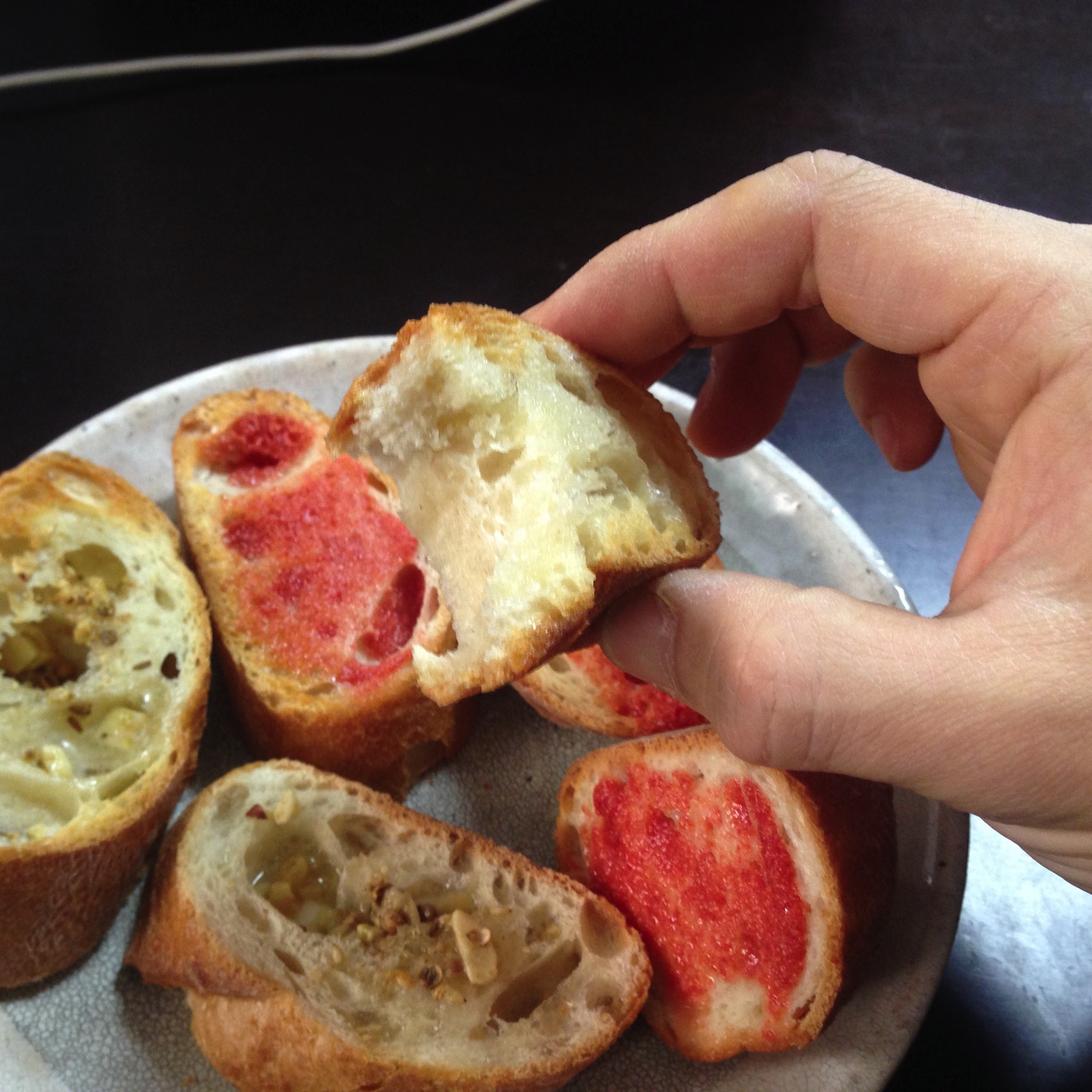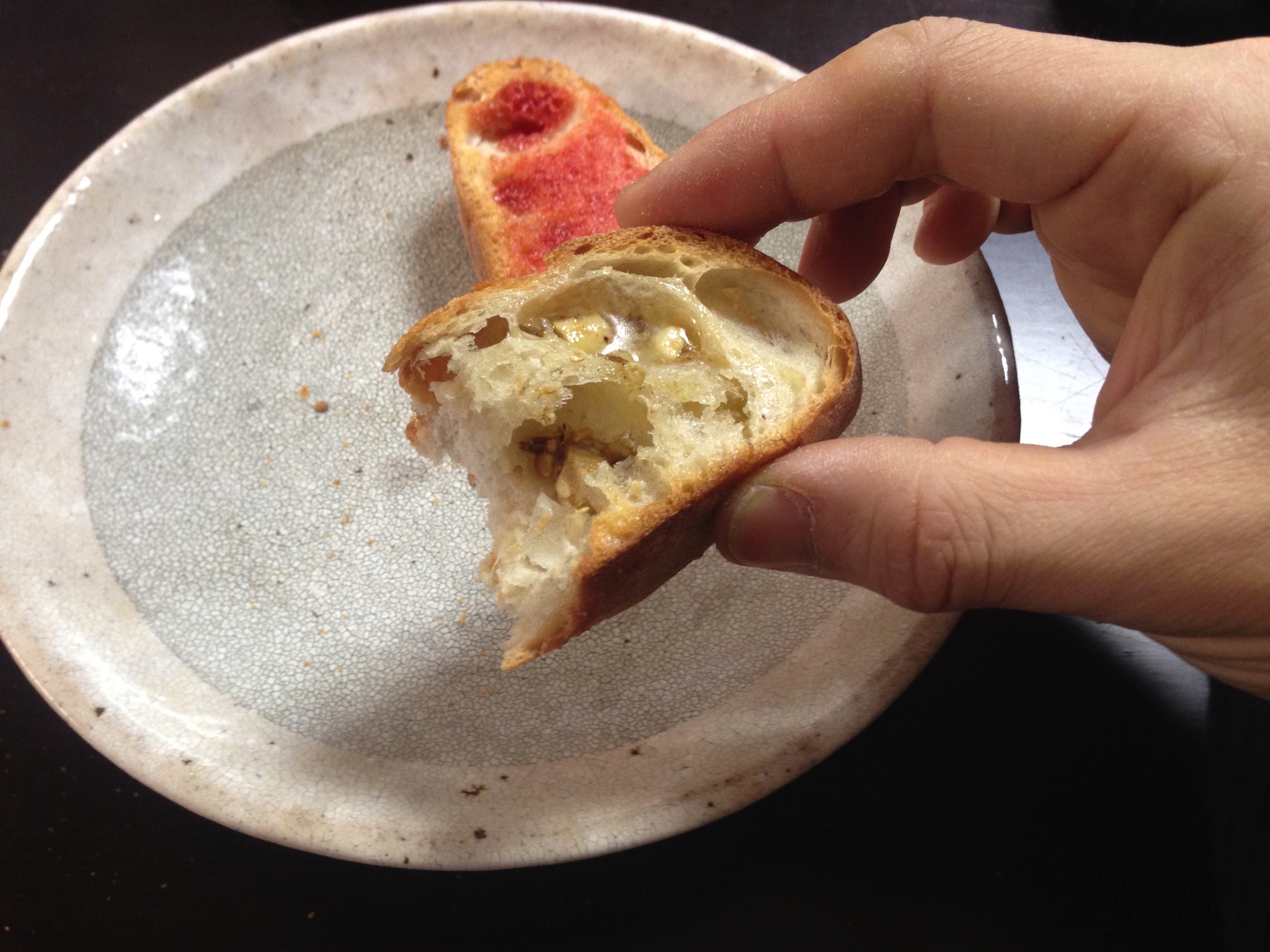 これは、バター塗ったものにも、たらこスプレッド塗ったものにも合います。