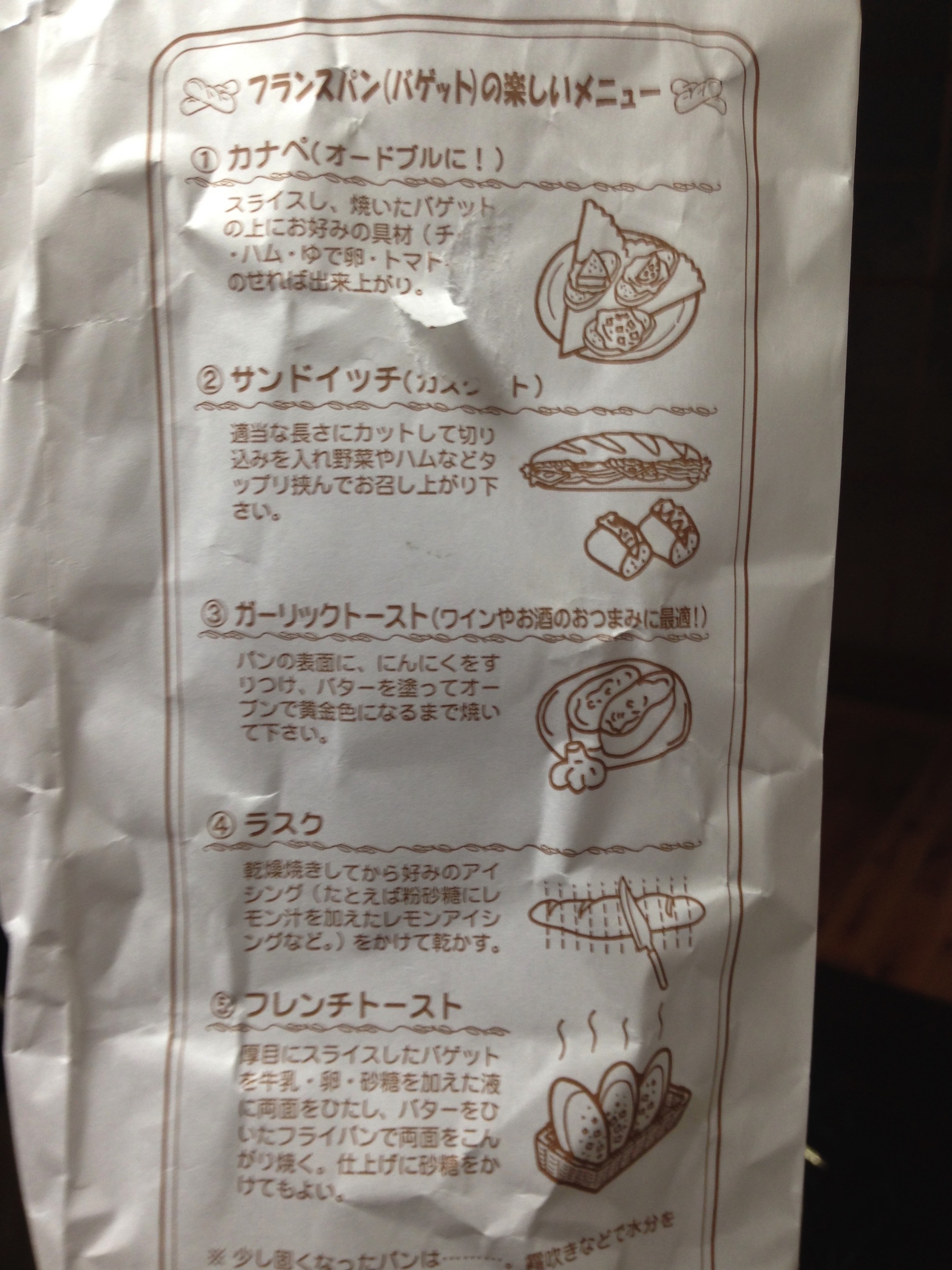 ちなみに、バゲットの袋には調理レシピも書かれています。