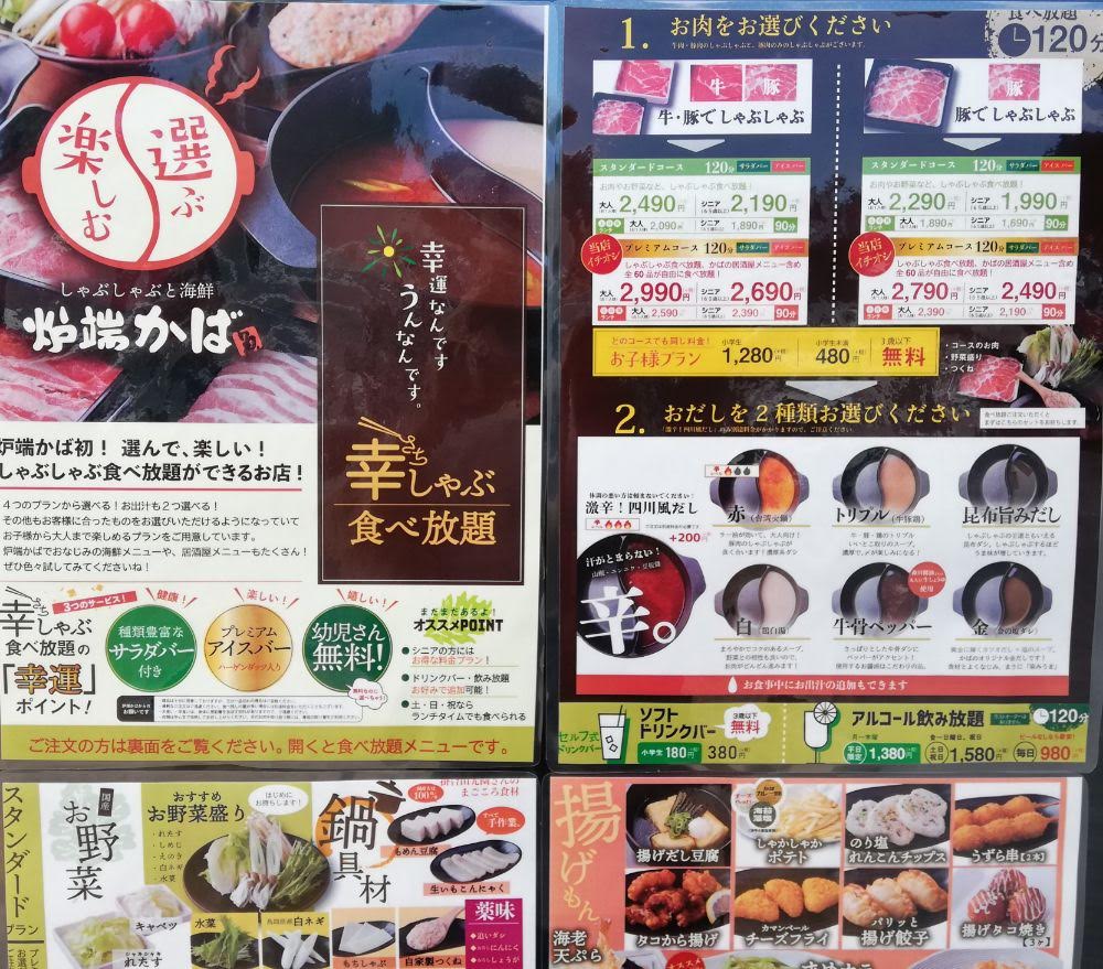 しゃぶしゃぶと海鮮 炉端かば 雲南店のメニュー
