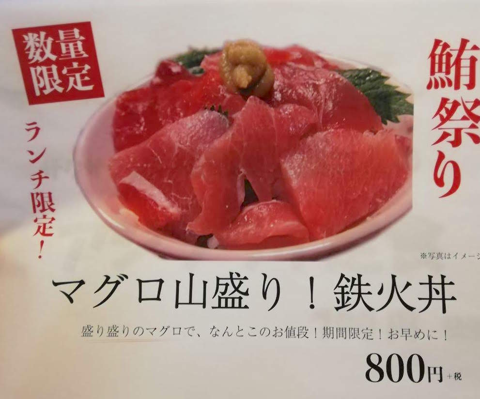 ランチでは期間限定特別メニュー、まぐろ山盛り鉄火丼や、