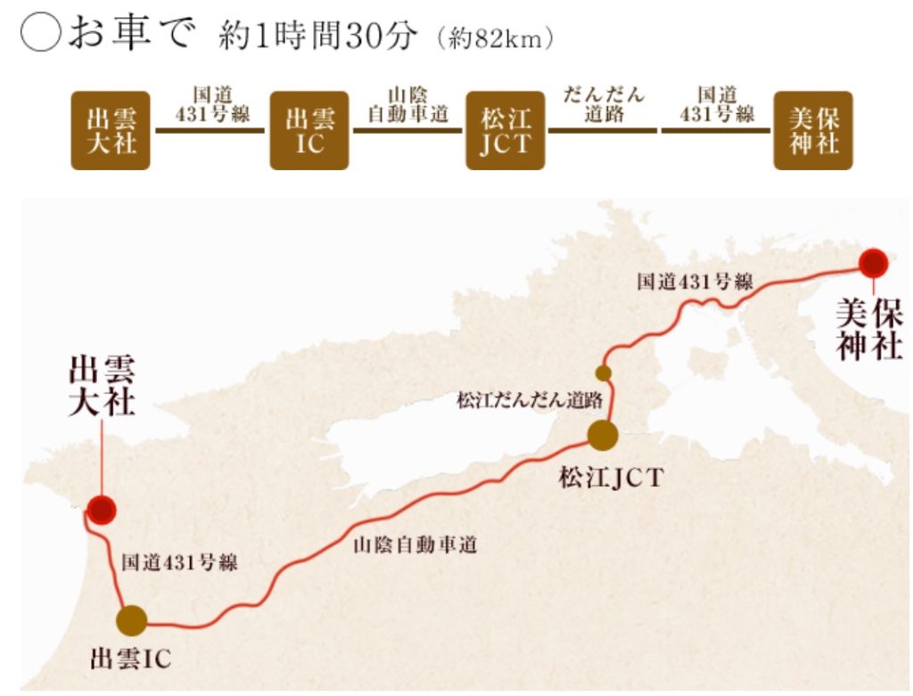 島根半島の両端に位置しているため、アクセス面では車があったほうが便利です。