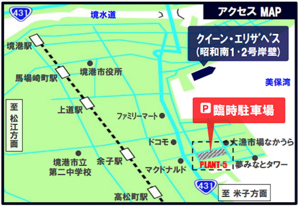 臨時駐車場となるP LANT-5 境港店に駐車しましょう。