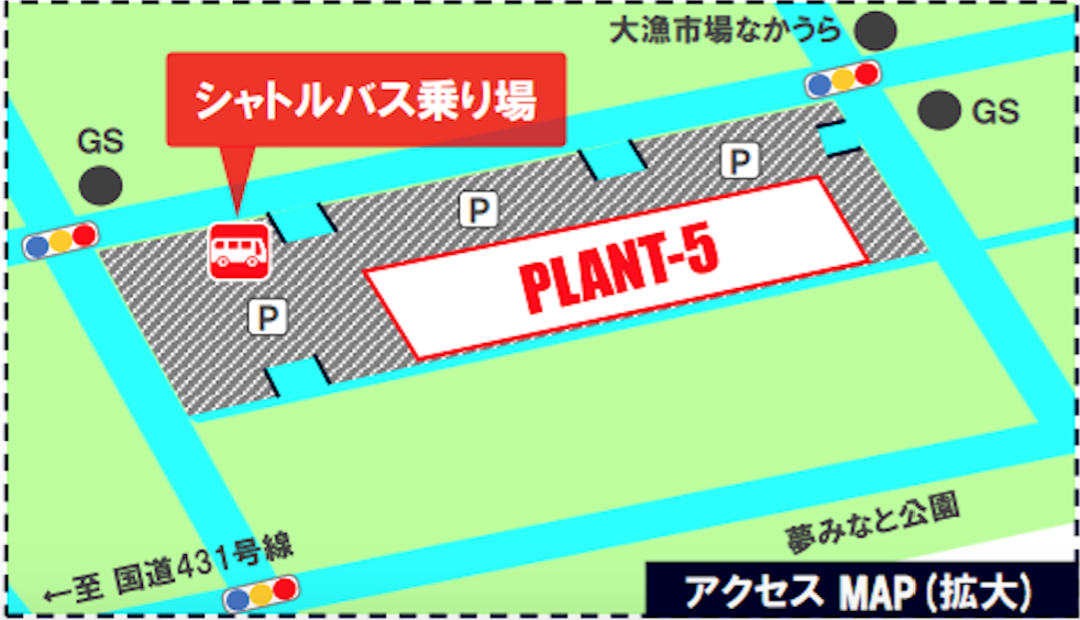 PLANT-5境港店ー昭和南1・2号岸壁の区間を6:30から18:00の間、無料のシャトルバスが随時運行の予定です。