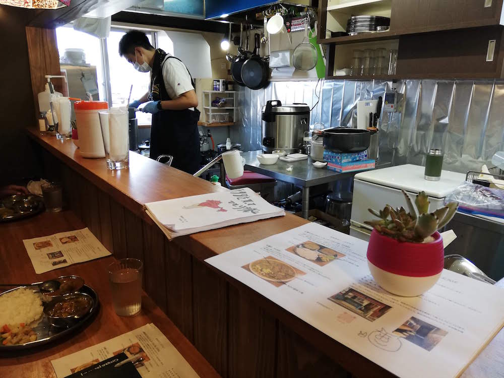 店主がせっせと調理する姿を眺めながらカレーを心待ちにします。