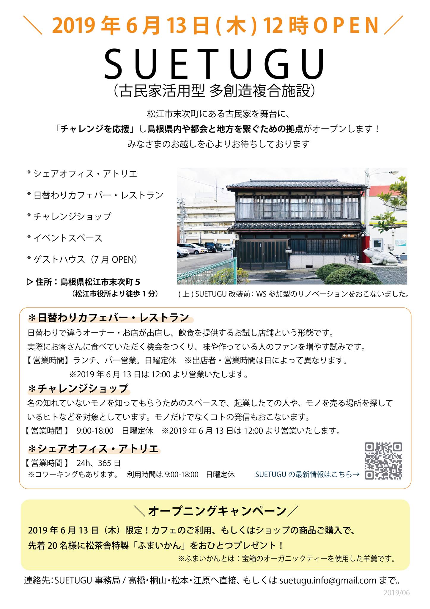 SUETUGUは、シェアオフィス、チャレンジカフェなどの複合拠点を作ることで、住民参加型で都会と地方や島根県内を繋ぐ拠点となることを目指しています。