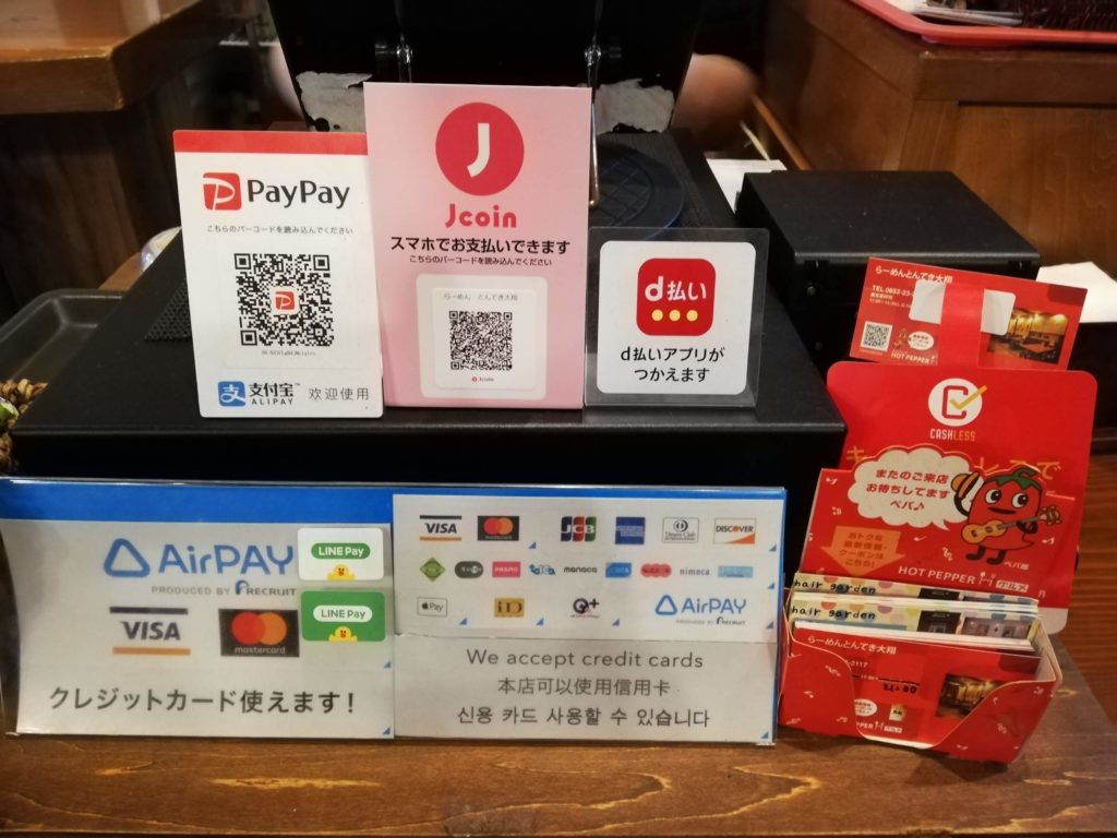 ラーメン屋さんではめずらしく、各種クレジットカードやキャッシュレスに対応しています。