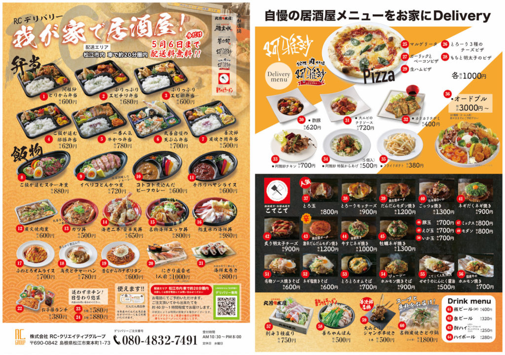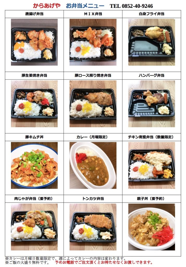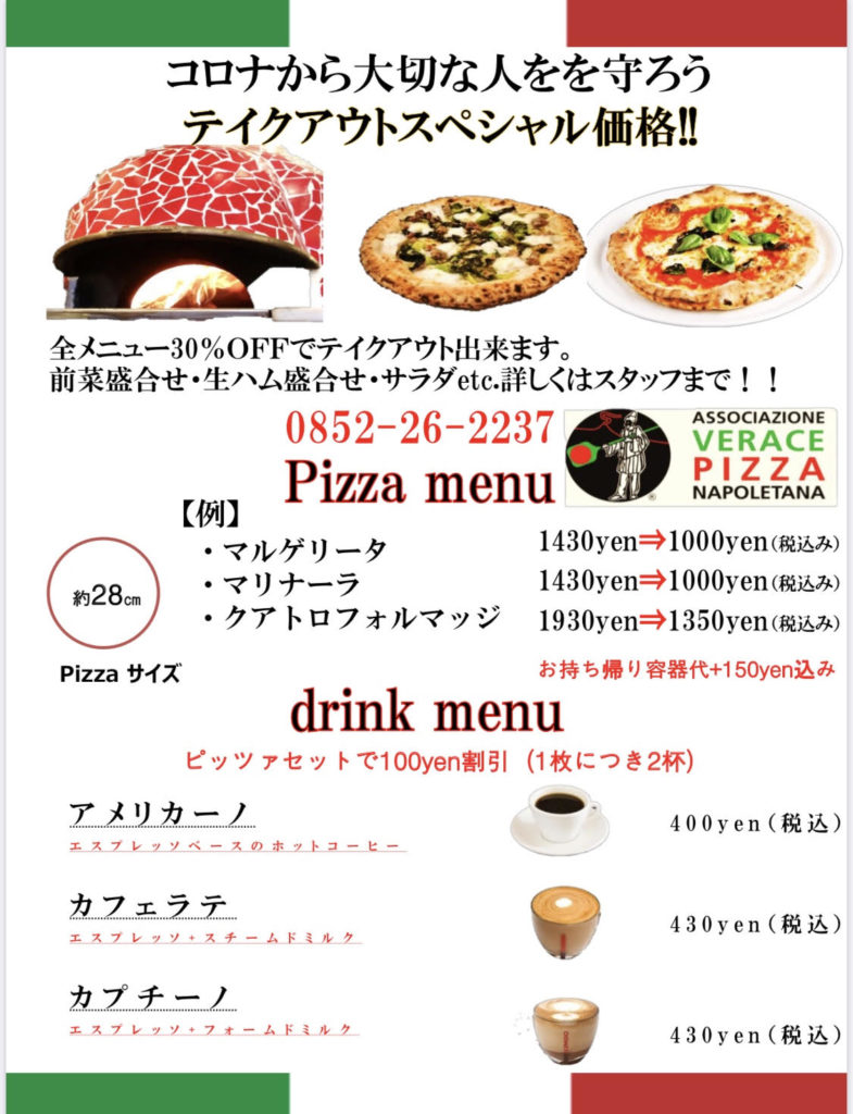 ※テイクアウト・配達情報のまとめサイト「ShimaneFoody」に掲載致します。